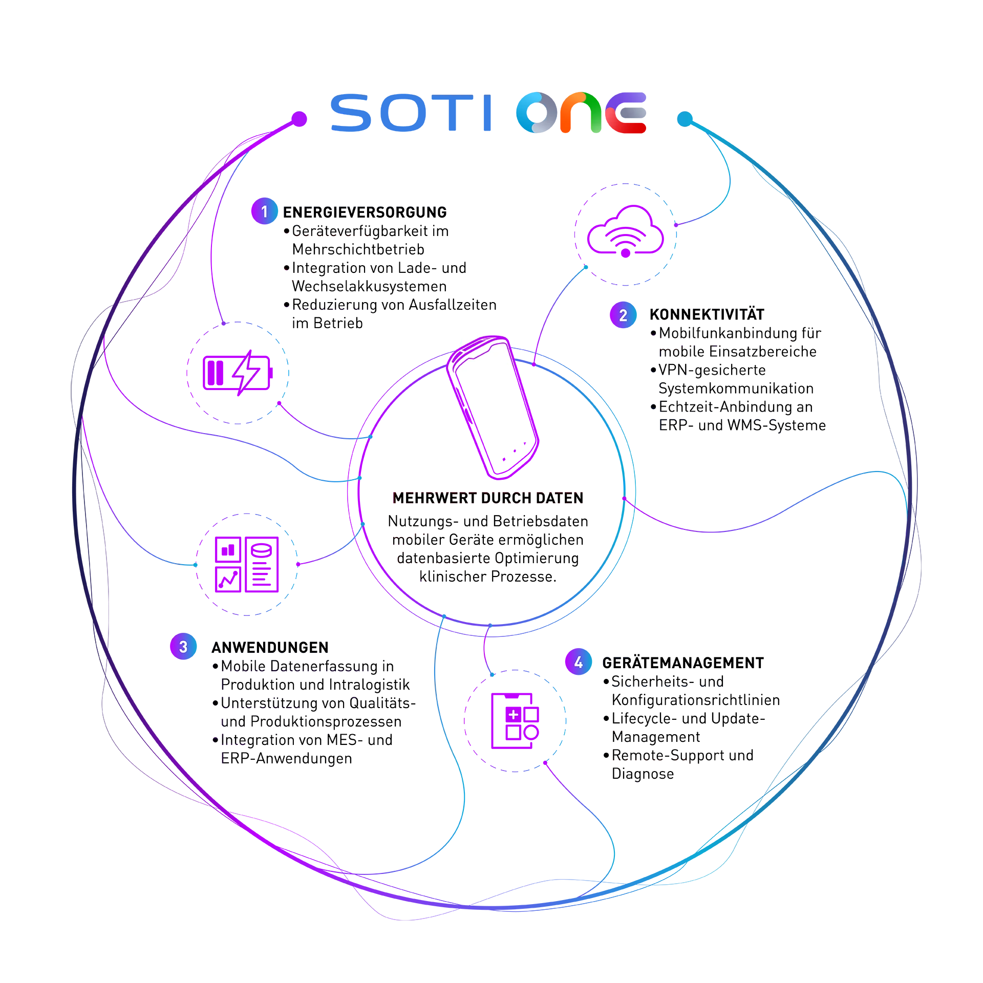 In Kombination mit unserer Auto-ID-Kompetenz entsteht eine integrierte, sichere Infrastruktur für mobile Prozesse im Gesundheitswesen.
